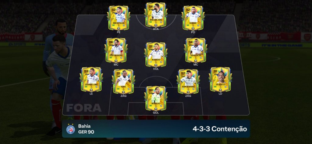 Os atletas do Bahia estão disponíveis por meio do evento especial “GINGA”, que celebra o futebol brasileiro dentro do EA FC Mobile. Ao todo, 11 jogadores tricolores aparecem na plataforma: Ronaldo, Gilberto, Kanu, Ramos Mingo, Luciano Juba, Acevedo, Jean Lucas, Everton Ribeiro, Ademir, Willian José e Erick Pulga.