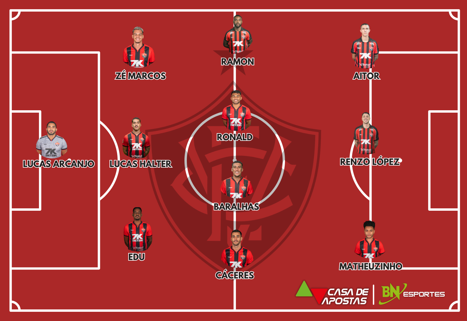 Vitória: Lucas Arcanjo; Edu, Lucas Halter e Zé Marcos; Cáceres, Baralhas, Ronald e Ramon; Aitor, Matheuzinho e Renzo López. Técnico: Jair Ventura.