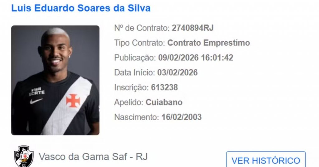 Com o nome registrado no Boletim Informativo Diário (BID) da Confederação Brasileira de Futebol (CBF) nesta segunda-feira (9), Cuiabano já pode estrear pelo Vasco da Gama no jogo contra o Bahia, pela 3ª rodada do Campeonato Brasileiro, nesta quarta-feira (11).